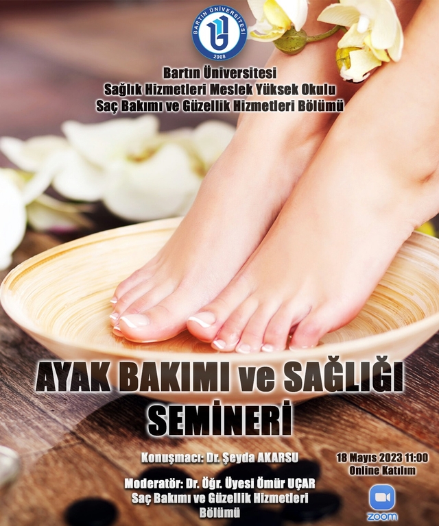 18.05.2023 tarihinde saat 11.00'de Dr.Öğr.Üyesi Ömür UÇAR moderatörlüğünde Dr.Şeyda Akarsu tarafından Ayak Bakımı ve Sağlığı semineri online platformda düzenlenecektir. Tüm öğrencilerimize duyurulur.
